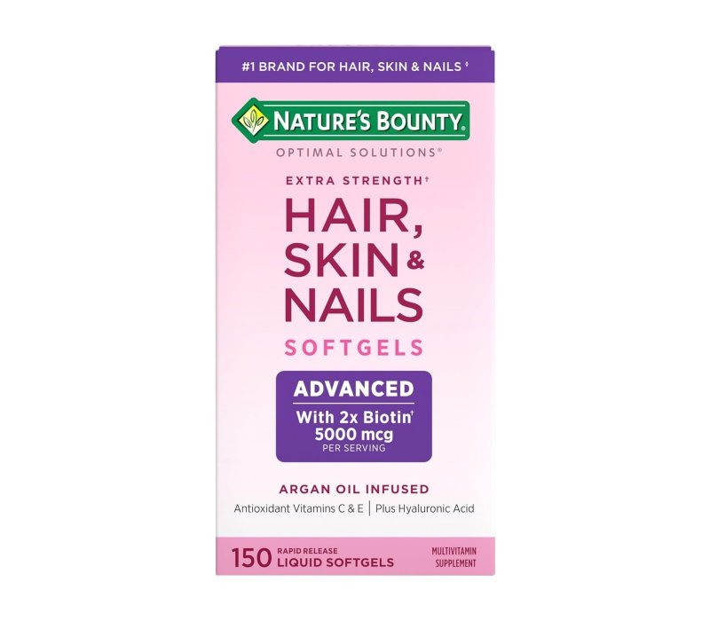 De la marca n.° 1 para cabello, piel y uñas, (2) las cápsulas blandas de liberación rápida Nature's Bounty Extra Strength Hair, Skin & Nails están repletas de biotina y contienen vitaminas antioxidantes C y E, además de ácido hialurónico y nutrientes vitales para promover un cabello hermoso, una piel radiante y uñas saludables desde adentro hacia afuera. (1) Cada porción de nuestras cápsulas blandas contiene vitaminas antioxidantes A, C y E, además de ácido hialurónico y biotina para ayudar a mantener un cabello, una piel y uñas saludables.