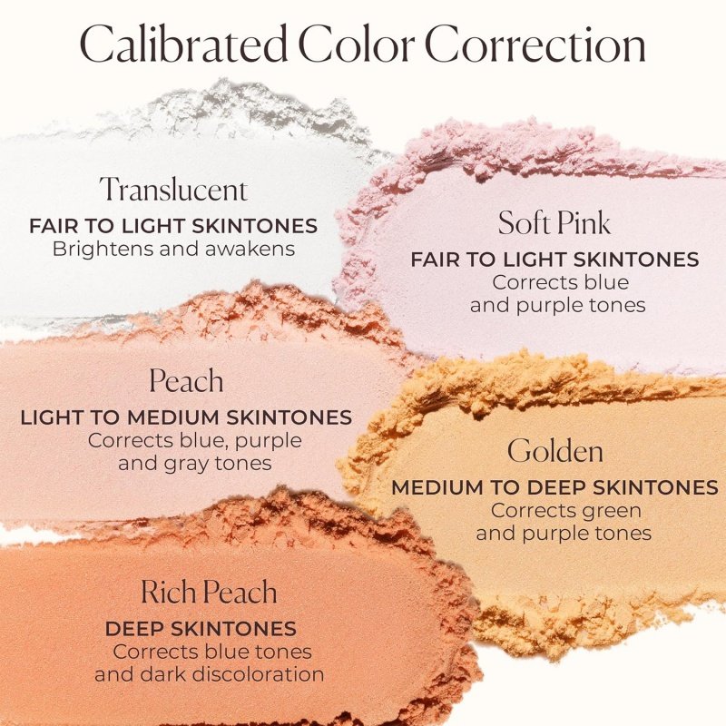 Los polvos ultrafinamente molidos fijan y extienden la duración del corrector, evitan las arrugas y dan luminosidad al mismo tiempo que corrigen las opacidades.