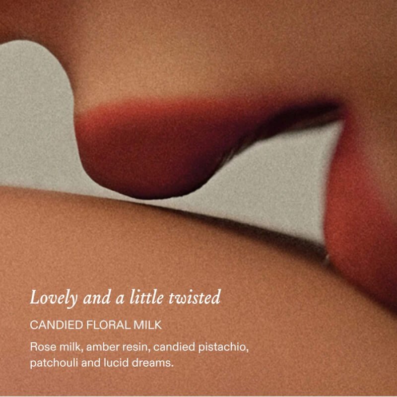 Descripción de la Fragancia: Lovely and a Little Twisted Eau de Parfum es una dulce leche floral. Como la decadencia envuelta en un sueño, comienza con la cálida y acogedora leche de rosas y pistacho, para luego transformarse en un cuerpo hipnótico de pachulí aterciopelado, oud aromático y resina de ámbar. ¿Qué podría ser más encantador y enigmático que lo imposible?