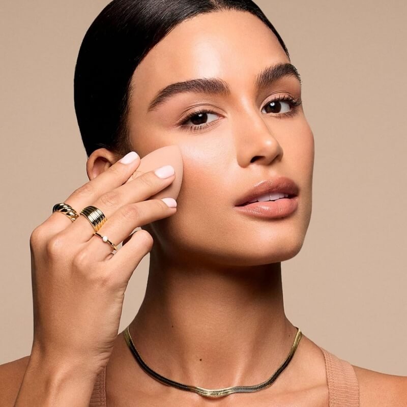 • Aplica el producto con la esponja de maquillaje multiángulo, diseñada para llegar a todas las zonas del rostro: grandes, específicas y difíciles de alcanzar. Úsala en seco para obtener mejores resultados.