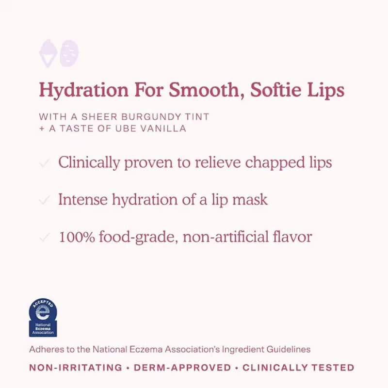 Qué es:  Un tratamiento de bálsamo labial no pegajoso, clínicamente probado, que brinda la hidratación intensa de una mascarilla labial con un tinte dulce y transparente utilizando un sabor no artificial de calidad alimentaria que es seguro para labios sensibles.